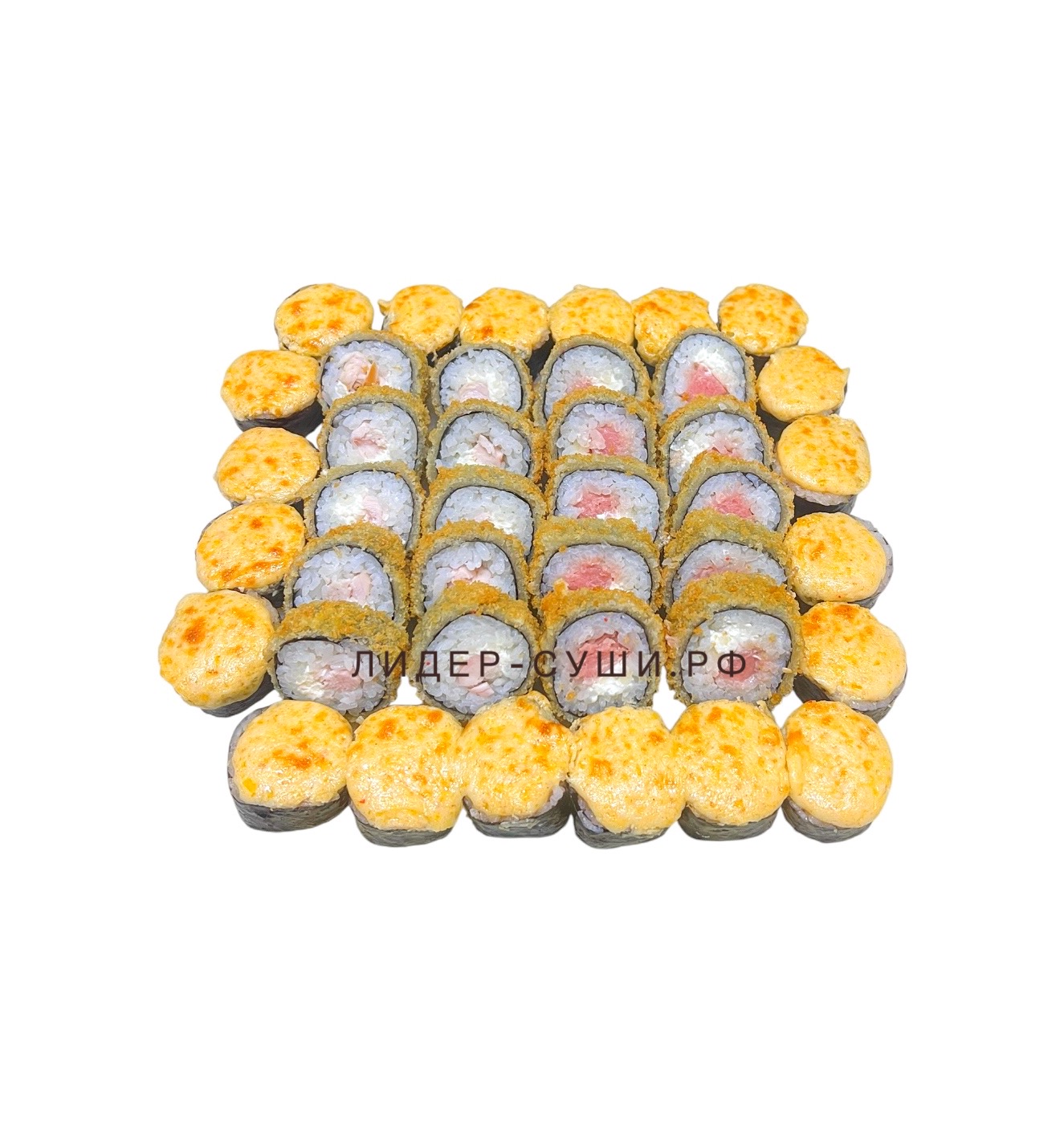 Горячие роллы: с курицей, лососем и фирменные роллы: филадельфия, калифорния.