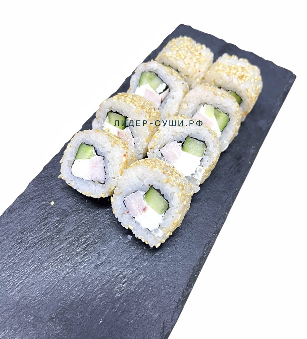 Копченная курочка, сливочный сыр, кунжут, огурец.