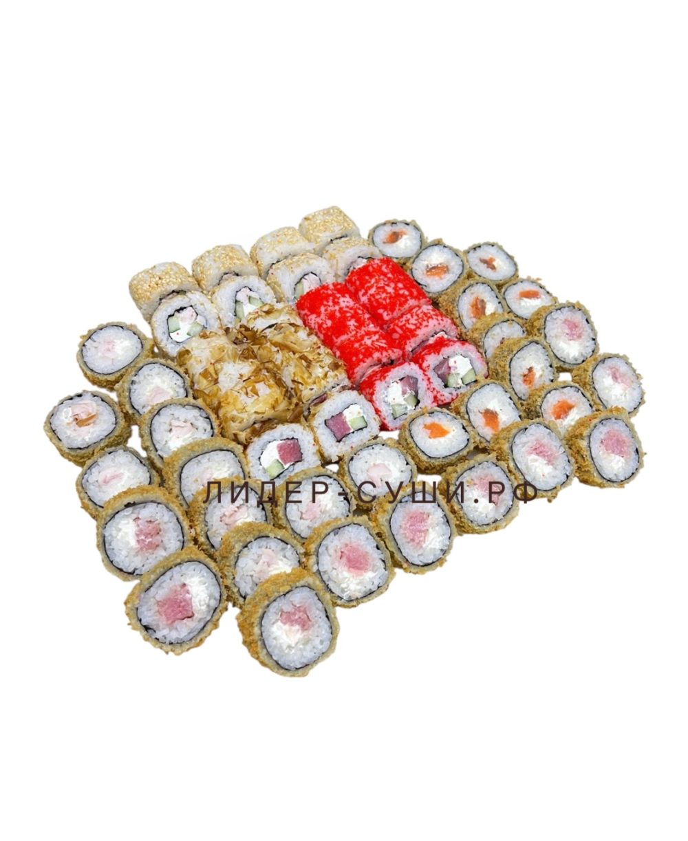 Филадельфия, чиз ролл, Аляска, запечённый с лососем, запечённый с тигровой креветкой, запечённый с курочкой.